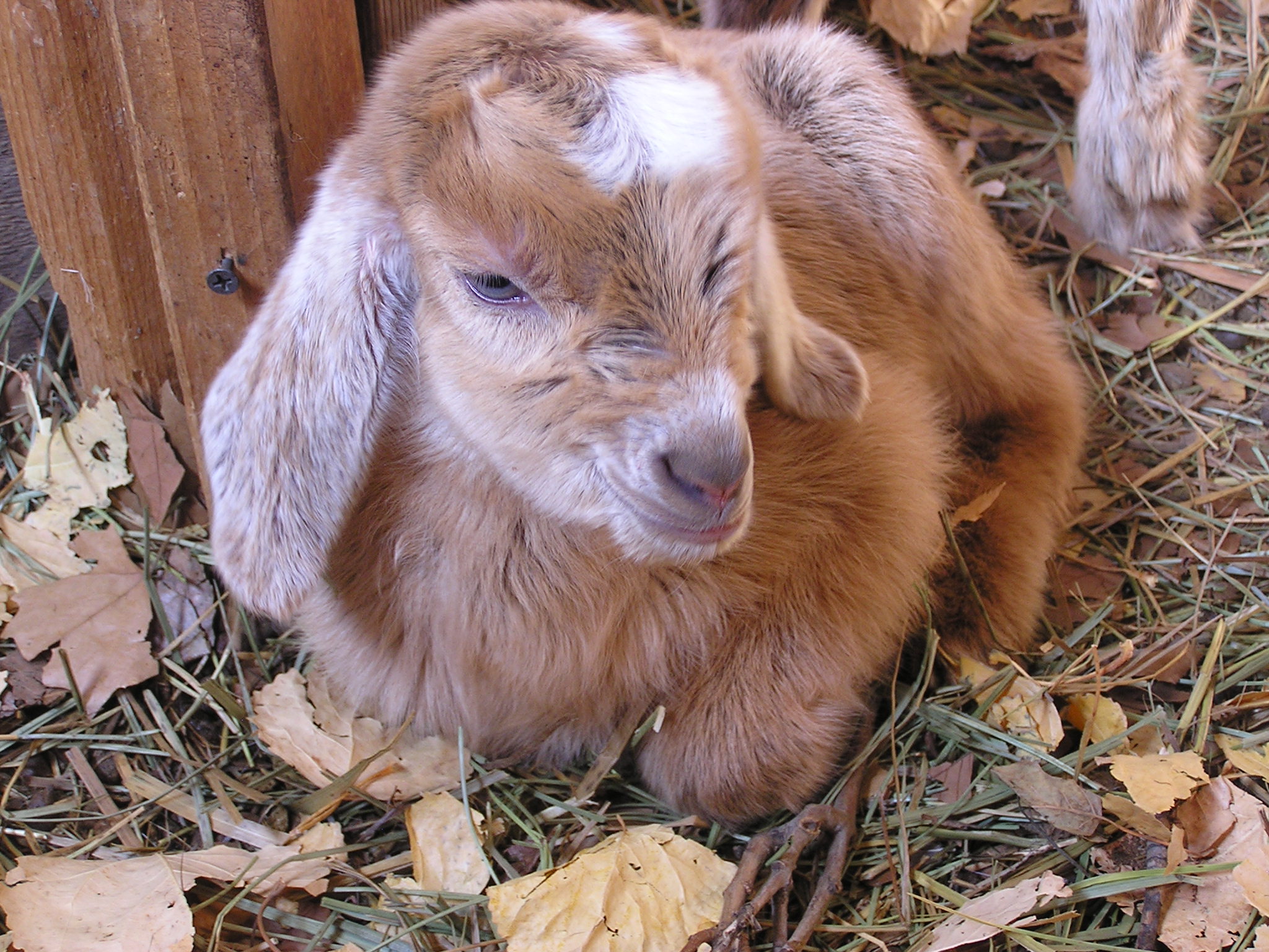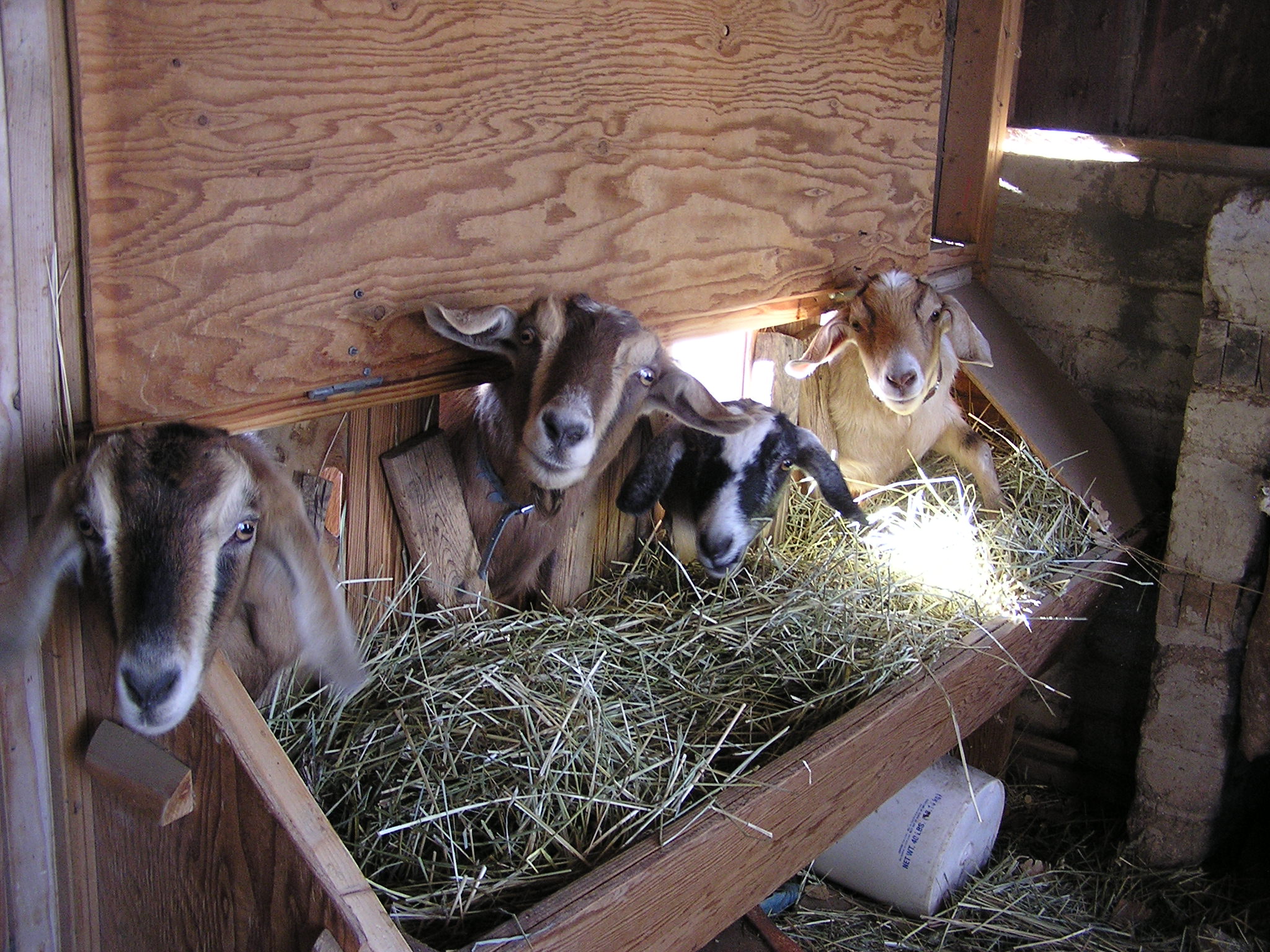 Our goats waiting for some grain. Hildegard is the one on the on the far end.